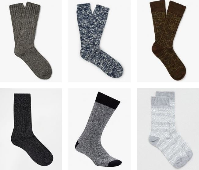 Một số thương hiệu tất nam danh tiếng thế giới như The Workers Club, Uniqlo hay Anonymous Ism cung cấp các sản phẩm khá đa dạng về chất liệu và màu sắc. Lý tưởng nhất là đầu tư một đôi giày cổ cao, vừa bảo vệ chân khỏi thời tiết lạnh vừa khỏi phải lo về vấn đề chọn tất. |