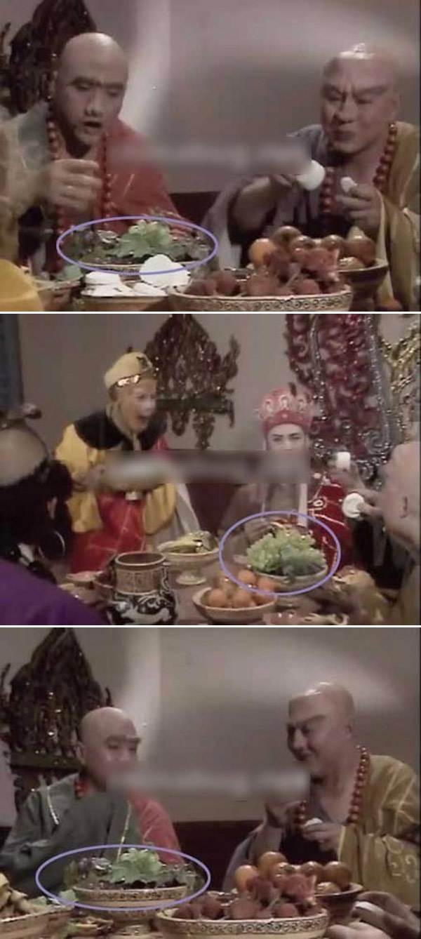Khi Phật Tổ mở tiệc đãi thầy trò Đường Tăng, lúc quay cận cảnh 2 vị Phật Tổ, rổ nho chỉ vừa đầy nhưng khi quay cận cảnh mấy thầy trò, rổ nho bỗng nhiên vung cao, sau đó khi trở lại cảnh 2 Phật Tổ, rổ nho lại trở về như cũ. |