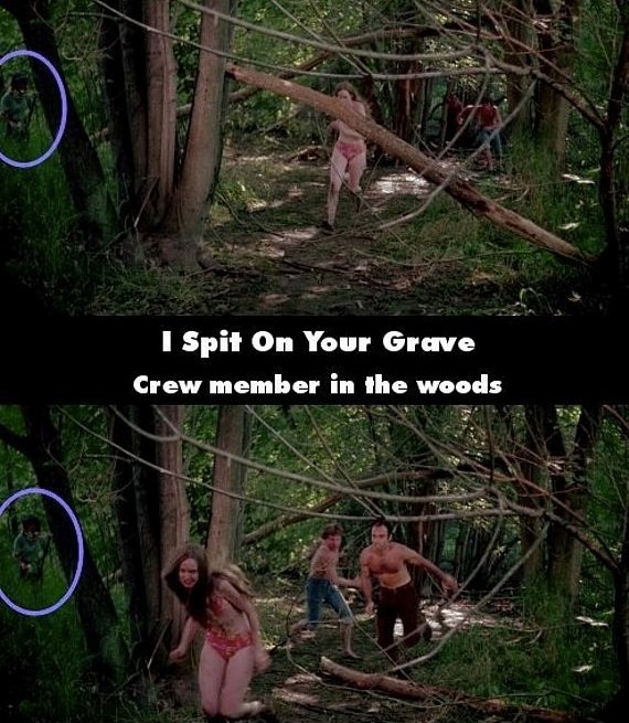 | I Spit On Your Grave (1978): Cảnh quay đã để lộ ra một thành viên trong nhóm làm phim. |