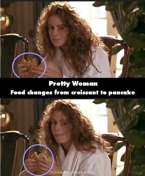 | Chiếc bánh trên tay Julia Roberts trong Pretty Woman đổi từ bánh sừng bò (croissant) sang bánh nướng chảo (pancake). |