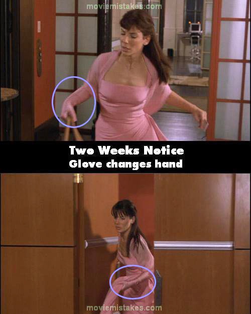 | Từ trong nhà lao ra ngoài cửa, chiếc găng tay của Sandra Bullock trong một cảnh phim Two Weeks Notice đã tự động chuyển từ tay này sang tay kia. |