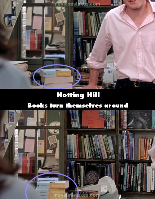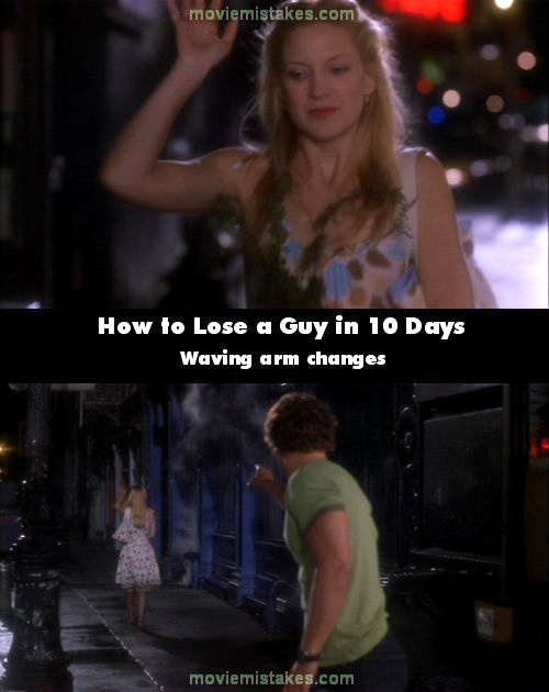 | Trong cảnh Ben đuổi theo Andie của How to lose a guy in 10 days, ở góc quay từ phía trước, Andie (Kate Hudson) giơ tay phải lên vẫy chào, nhưng ở góc quay sau lưng, khán giả lại thấy cánh tay giơ lên là tay trái. |