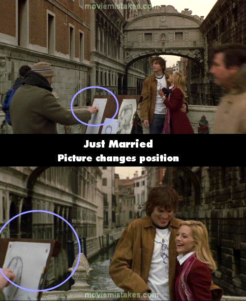 | Vị trí bức ảnh của họa sĩ đường phố đã được thay đổi trong một cảnh quay của Just Married. |