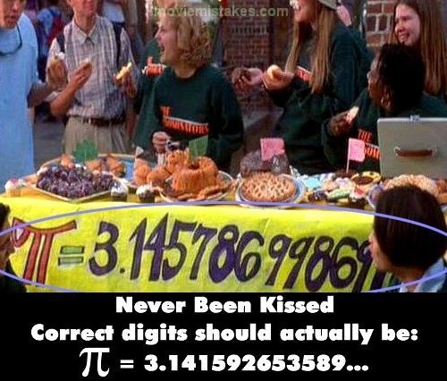 | Có lẽ người chuẩn bị đạo cụ của Never Been Kissed đã tìm kiếm sai nguồn trên Google nên viết sai hoàn toàn số pi. |