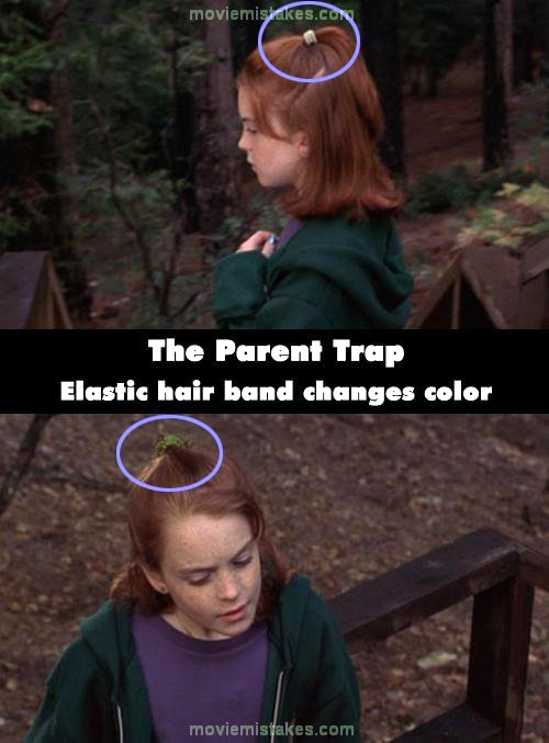 | Chiếc dây buộc tóc của Lindsay Lohan trong một cảnh quay của The Parent Trap đã đổi màu, đổi cả kiểu dáng. |