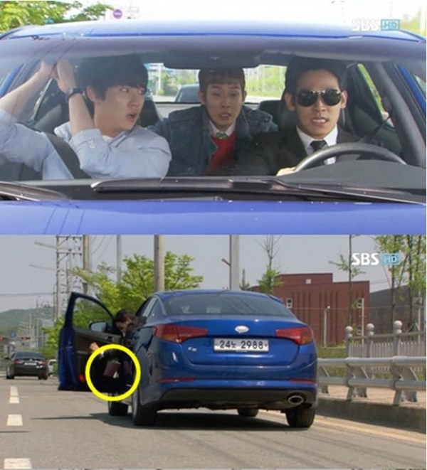| Ở một phân cảnh của bộ phim The Rooftop Prince, khán giả nhận thấy ở cửa xe ô tô có để tập kịch bản phim. |