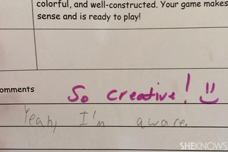 | Cậu bé đã viết dưới lời nhận xét của cô giáo trong bài kiểm tra của cậu: “Rất sáng tạo” - “Vâng, em biết!”. |