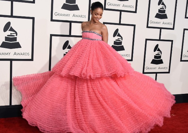 Trước đó, tại lễ trao giải Grammy hồi tháng 2, hình ảnh nữ tính của Rihanna trong chiếc váy xòe màu hồng cũng không thoát khỏi trí tưởng tượng phong phú của cư dân mạng.