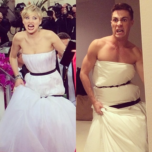 | Tháng 1/2014, chiếc váy đen trắng Dior của Jennifer Lawrence tại lễ trao giải Quả cầu vàng cũng gây xôn xao Internet. |