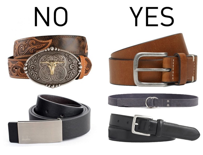 | 3. Dây nịt “hoa lá cành”. Sợi dây to bản với bề mặt quá nhiều họa tiết rườm rà chỉ khiến người đối diện “hoa mắt”. Trong trường hợp này, các loại dây thắt lưng đơn giản, tinh tế là lựa chọn rất đáng tham khảo. |