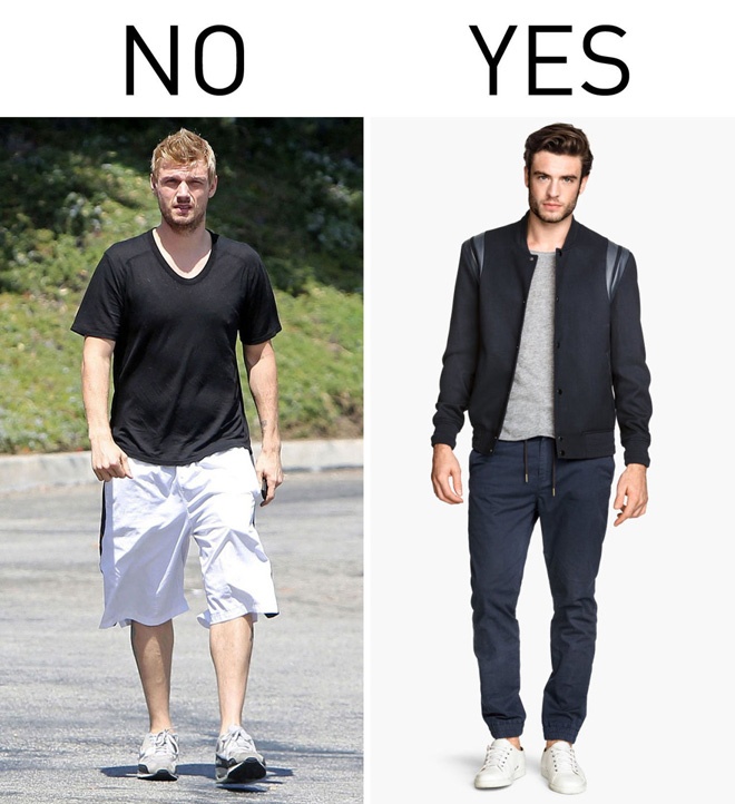 | 8. Trang phục rộng “thùng thình”. Đồ over size rất cá tính với phái đẹp, nhưng lại có khả năng “dìm hàng” phái mạnh. Chọn các thiết kế vừa vặn, phối chúng theo cùng một bảng màu sẽ giúp bạn phong độ và quyến rũ hơn. |