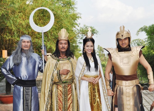 | Phim cổ trang Thạch Sanh được nhà sản xuất ấn định là thời Hùng Vương, vì thế trang phục của các diễn viên có hoa văn chủ đạo là những hình trang trí trên trống đồng. Tuy nhiên, nhiều khán giả phản ứng vì cho rằng, nó có kiểu dáng quá hiện đại. Ảnh: Đoàn làm phim cung cấp |