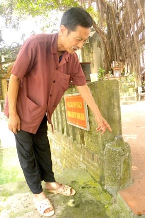 Ngoài giếng Ngọc, truyền thuyết Cụ Cá và lăng mộ, cối đá ly kỳ, làng Diềm còn có nhiều điều lạ lùng, bí ẩn. Cụ Bích hào hứng kéo tay chúng tôi đi ra phía gần cổng khu giếng Ngọc, đền Cùng, chỉ tay về phía mái nhà cùng vài chiếc cột đá rồi bảo: