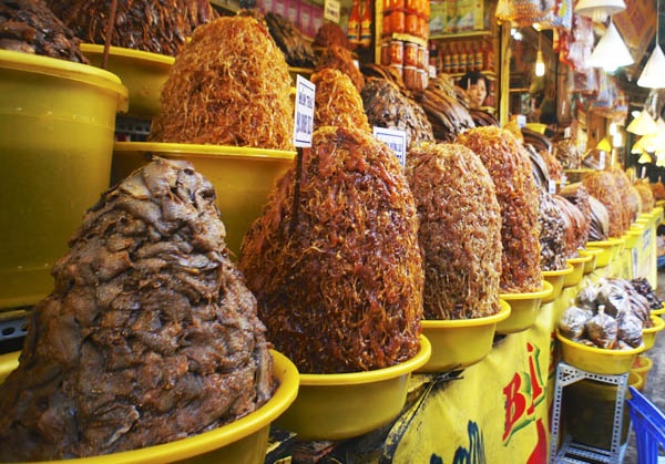 Tháng giêng dạo chợ Châu Đốc bạn còn bắt gặp lá sầu đâu, cũng là một đặc sản của vùng An Giang. Lá này có vị đắng, hơi khó ăn nhưng nếu trộn gỏi với khô cá sặc, xoài xanh thì đặc biệt ngon.