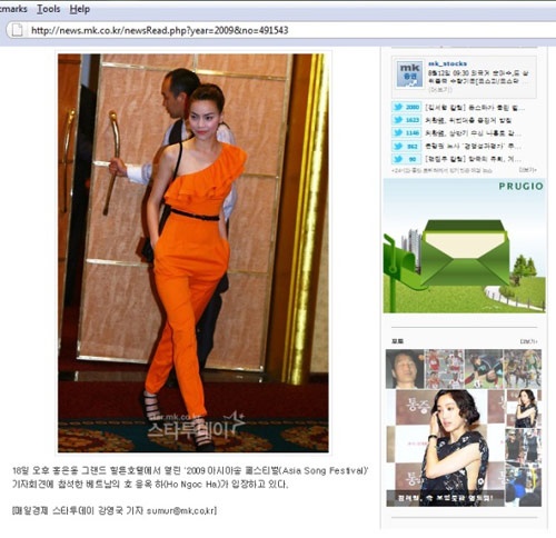 | Hình ảnh Hồ Ngọc Hà trên các trang tin tức của Hàn Quốc. |