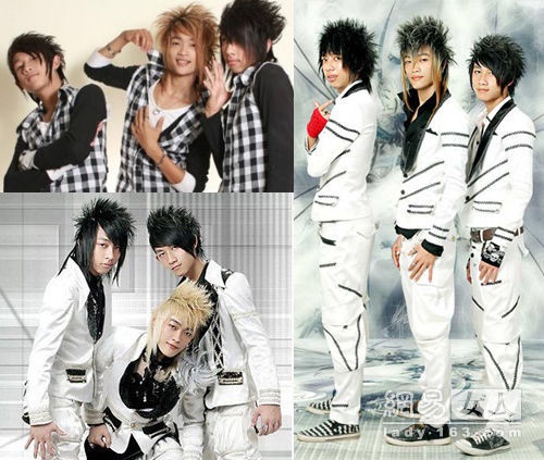 | Hình ảnh 3 thành viên nhóm HKT bị truyền thông Trung Quốc gọi là "những anh thợ cắt tóc nhà quê". |