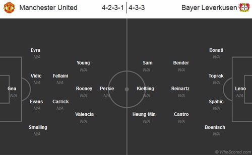 MU sẽ phải cẩn trọng với những tình huống đá phạt cố định của Leverkusen. Trong đội hình của HLV Sami Hyypia, tiền đạo chơi cao nhất trên hàng công Stefan Kiessling có khả năng không chiến rất tốt khi sở hữu chiều cao 1m91. Ở trận đấu thuộc vòng 5 Bundesliga gặp Wolfsburg, chân sút 29 tuổi người Đức đã ghi bàn ấn định chiến thắng 2-1 cho Leverkusen bằng một cú đánh đầu từ pha treo bóng của Gonzalo Castro.