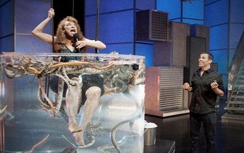 Đu mình bằng dây trong không trung đã trở thành màn biểu diễn thông thường với những ca sĩ ưa thích sự mới lạ. Biểu diễn cùng những con vật ghê sợ như trăn, rắn mới đáng để coi là một thử thách rợn tóc gáy với chính người nghệ sĩ lẫn những khán giả theo dõi.