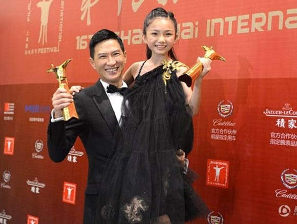 | Trương Gia Huy và Lý Hinh Xảo nhận Cup vàng Liên hoan phim Quốc tế Thượng Hải 2013. |