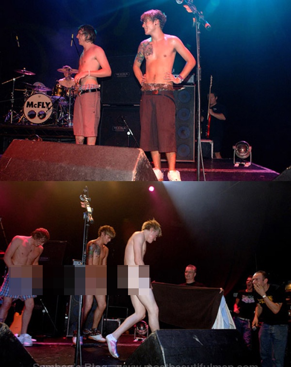 Nhóm nhạc rock McFly từng nhiều lần khoe cơ thể trên sân khấu nhưng vẫn chưa hết ngại ngùng. Trong một lần tới G.A.Y diễn vào năm 2007, dưới sự chủ trì của người chủ hộp đêm, 2 thành viên lần lượt cởi cúc áo, khóa quần và khoe “của quý” trong giây phút.