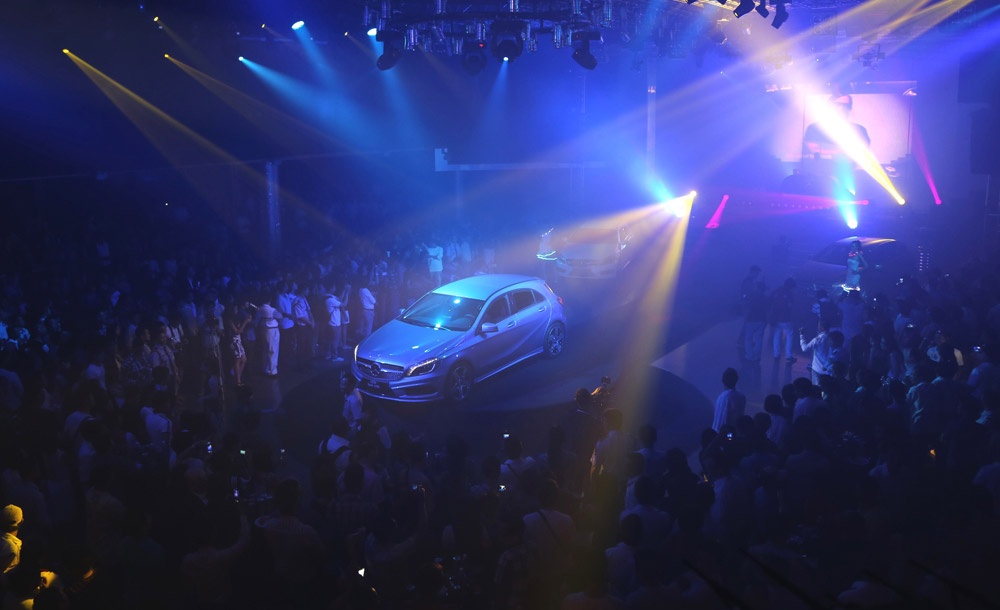Trước đây, những buổi lễ ra mắt xe hơi thường gắn với các showroom trang trọng, các khách sạn 5 sao hoặc có thể là không gian triển lãm, nhưng màn ra mắt mẫu xe nhỏ A-Class 2013 đã được Mercedes-Benz Việt Nam tổ chức tại Next Top Club - một trong những club lớn nhất tại TP.HCM. Cùng với hiệu ứng ánh sáng và nhạc nền electronic của các DJ hàng đầu, có thể nói A-Class là mẫu xe có màn ra mắt trẻ trung và sôi động nhất trong ngành ô tô Việt Nam từ trước đến nay.