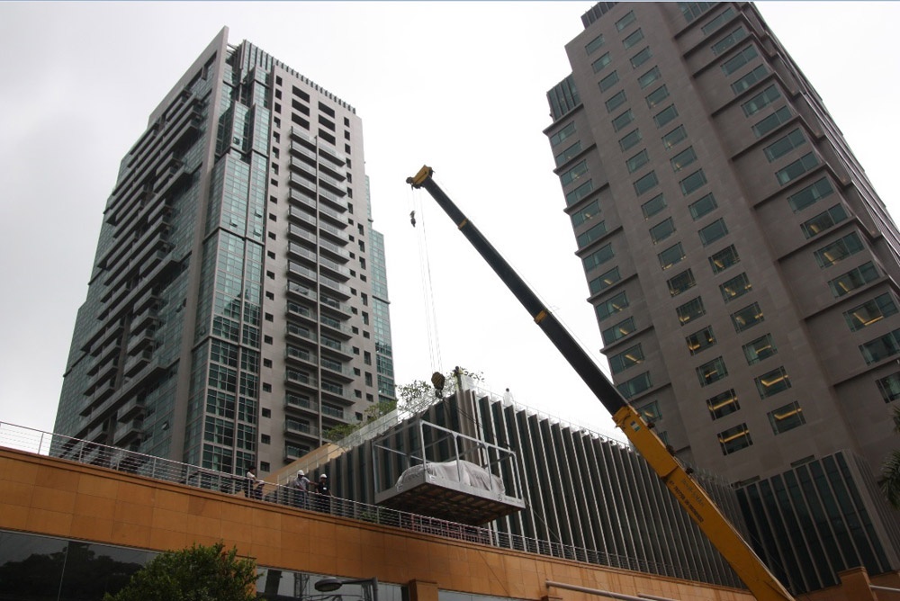 | Mercedes E-Class đang được đưa lên nóc khách sạn InterContinental TP.HCM. |