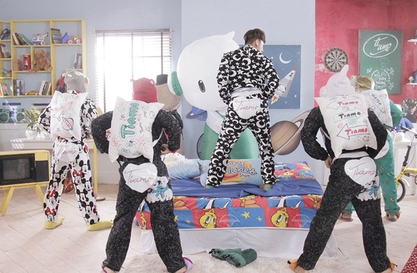 Trong không gian vui tươi đầy màu sắc, nhân vật chính đã diện luôn bộ đồ ngủ và thể hiện những động tác ngộ nghĩnh, siêu dễ thương khiến ai cũng phải bật cười. Lời tỏ tình “Tiamo” cùng sự chân thật đến đáng yêu của nam ca sĩ điển trai chắc chắn đủ làm tan chảy trái tim của bất cứ cô gái nào.