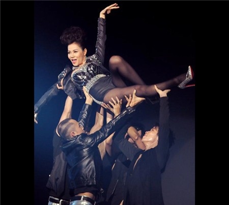 | Thu Minh thường xuyên thể hiện vũ đạo bay trên cao. |