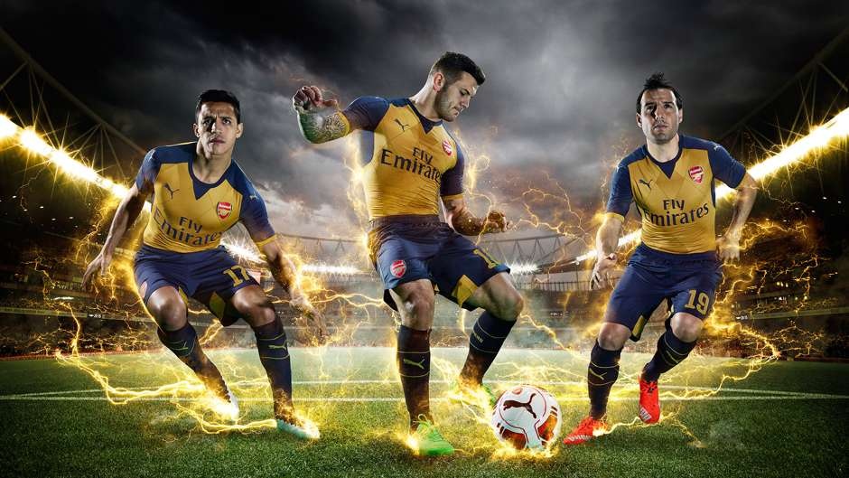 | Mẫu áo sân khách của Arsenal là sự kết hợp giữa màu vàng và xanh đen. Cả hai trang phục này đều được các học trò huấn luyện viên Arsene Wenger sử dụng trong chuyến du đấu châu Á vừa qua. (Xem chi tiết) |