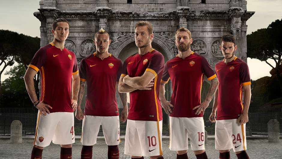 | Mẫu áo mới của Roma tối giản trong họa tiết. Phía trước chỉ có hai logo của CLB và nhà tài trợ. Chiếc áo được thiết kế bó với cơ thể giúp cầu thủ trông mạnh mẽ như chiến binh thời La Mã. |