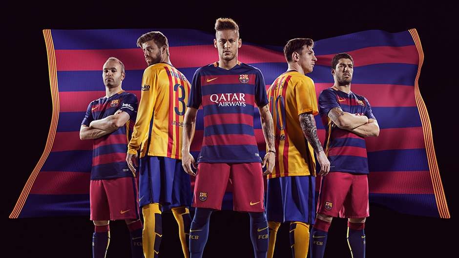 | Barca công bố áo đấu mùa 2015/2016 cuối tháng 5. Với trang phục sân nhà, các đường kẻ màu xanh tím và đỏ thẫm truyền thống ở thân áo được đổi từ chiều dọc thành chiều ngang. Hai bên hông áo là màu cờ xứ Catalunya. Màu quần cũng có sự thay đổi, từ xanh tím sang đỏ thẫm. |