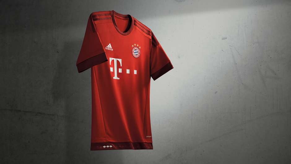 | Trang phục sân nhà của Bayern mùa tới không còn sọc xanh trên thân áo, thay vào đó là màu đỏ chủ đạo. |