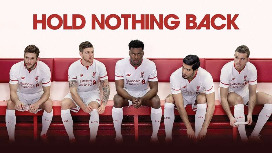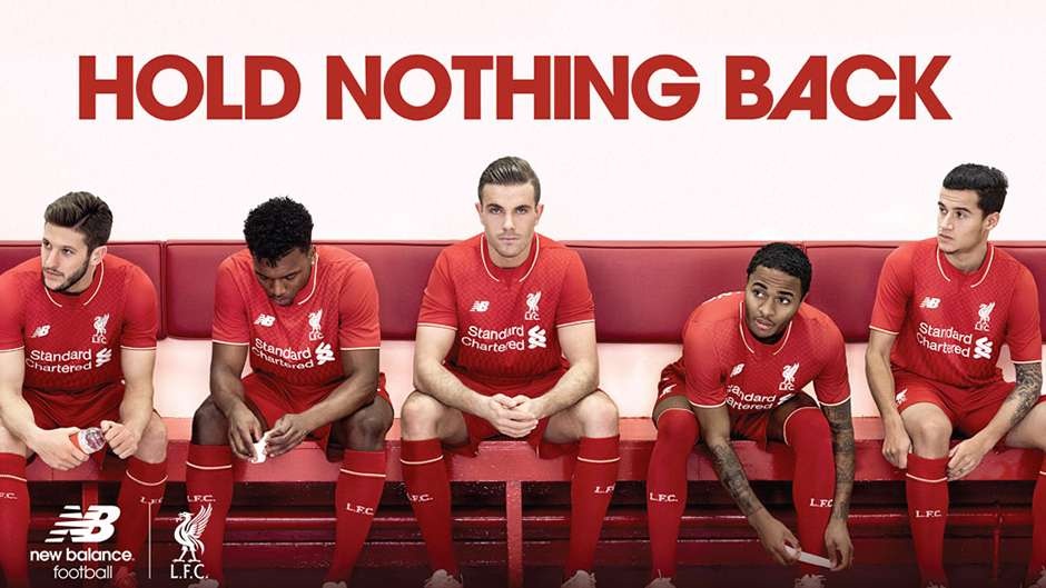 | Liverpool là một trong những CLB ra mắt áo đấu mùa 2015/2016 sớm nhất (tháng 4). Khi đó cầu thủ chạy cánh Raheem Sterling (thứ 2 từ phải sang) vẫn còn phục vụ đội bóng vùng Merseyside. |