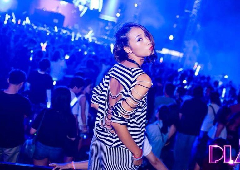 | Trang Khiếu khoe vẻ cá tính trong mẫu áo kẻ hở lưng sexy. |