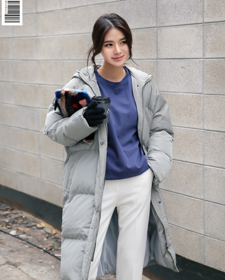| Áo lông vũ dáng dài với sắc màu nhẹ nhàng, thích hợp phong cách dịu dàng của bạn gái. |