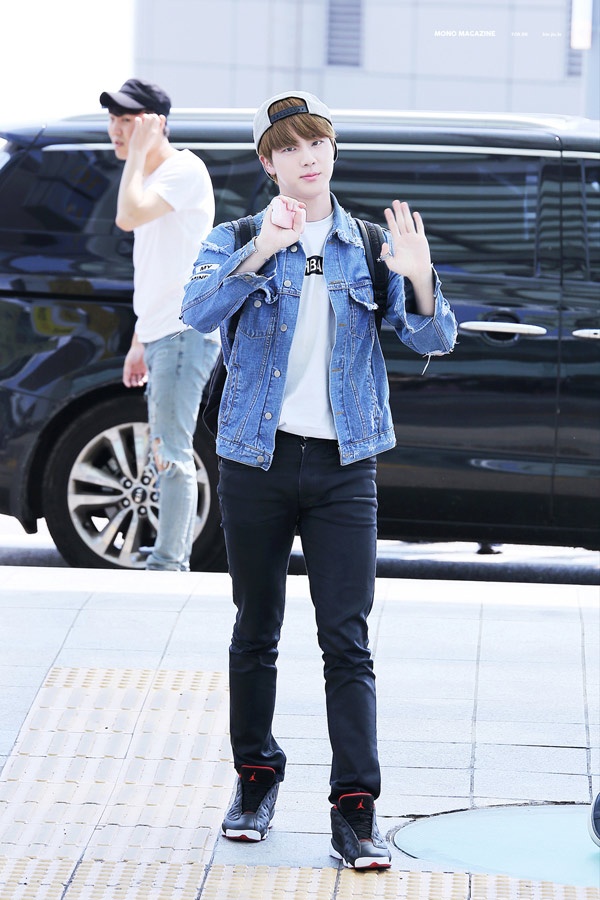 | Chàng mỹ nam Jin hoàn thiện phong cách thư sinh lịch lãm nhờ mẫu giày Jordan nam tính. |