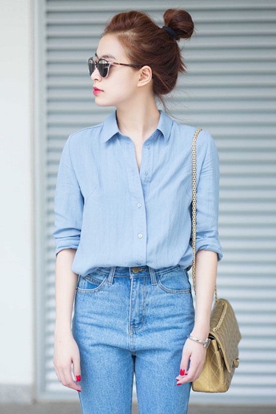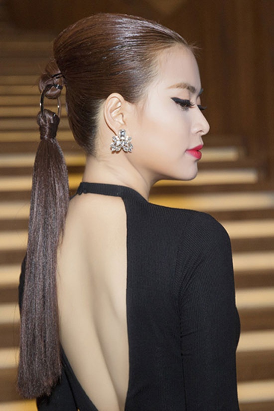Nếu như tóc đuôi ngựa buộc thấp dịu dàng thì buộc cao lại gọn gàng, và trẻ trung. Với kiểu tóc này, bạn chỉ cần make -up nhẹ nhàng giống nữ ca sĩ Đừng vội vàng cũng đủ thu hút mọi ánh nhìn.