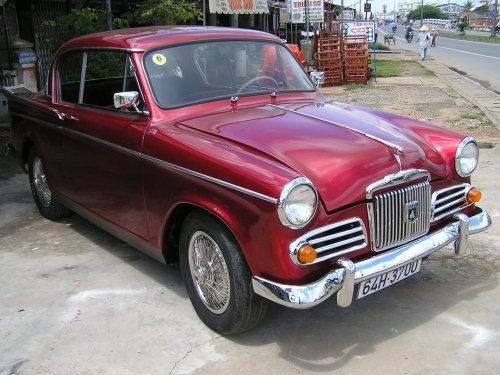 Phần đầu xe với ga-lăng và hốc gió hình dáng lạ mắt đã như thầm nói lên đây là mẫu xe cổ “độc nhất vô nhị” tại Việt Nam. Trong thế giới ôtô, Sunbeam Rapier là một đại diện xe hai cửa phong cách thể thao khỏe khoắn, đến từ Vương quốc Anh. “Sunbeam” có nghĩa là “tia nắng”, còn “Rapier” có nghĩa là “thanh trường kiếm”. Có thể nói, nếu bạn được nhìn tia nắng lấp lánh trên thanh trường kiếm ấn tượng đến thế nào, thì cảm xúc khi ngắm chiếc Sunbeam Rapier Series IIIA cũng tương tự như vậy. Xe thiết kế bốn chỗ ngồi nhưng băng ghế sau rộng thoáng nên năm người lớn vẫn ngồi thoải mái. Phần lớn nội thất được bọc nhung đỏ bắt mắt, với tay quay kính cửa xe sáng bóng. Bộ kính xe còn giữ được nguyên thủy. Đặc biệt, kính cửa xe hai bên hông có thể mở ra hoàn toàn, không có trụ chắn ngăn đôi, vì thế tầm nhìn từ trong xe rất thoáng.