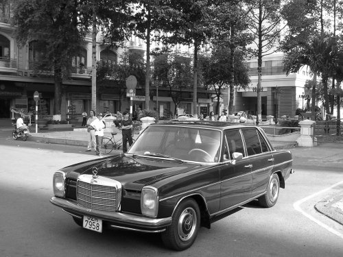 Chiếc xe này bắt đầu lăn bánh cách đây gần nửa thế kỷ, trước khi đến Việt Nam. Và nay vẫn thế. Từng dặm đường từ Nam chí Bắc đã hằn in dấu lốp của chiếc xe mang đậm đường nét vuông vắn, vững chãi, lịch lãm như truyền thống của hãng xe Đức. Bên cạnh hầu hết chi tiết còn nguyên thủy,dàn đồng xe cực kỳ chắc chắn và có nét thẩm mỹ cao. Khoang xe rộng rãi với khoảng giữa băng ghế trước thoáng vì không có hộp đựng đồ. Máy lạnh mát rượi. Vành vô-lăng gin bằng sừng trắng quý phái. Quá trình bảo dưỡng khá tốn kém do chủ xe ưu tiên chọn nhập phụ tùng thay thế chính hiệu từ Đức.