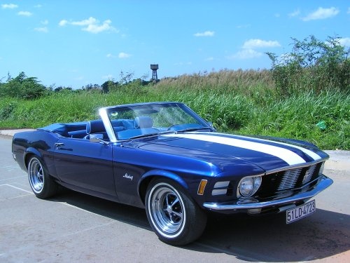 Thời điểm chiếc xe ra đời, năm 1970, là cột mốc lịch sử đáng nhớ, khi phong trào của nhân dân Mỹ yêu chuộng hòa bình phản đối chiến tranh ở Việt Nam lan rộng khắp nước Mỹ, mà nhân vật hưởng ứng tiêu biểu là nữ minh tinh màn bạc Jane Fonda. Đây là Ford Mustang sport 2 cửa, mui trần nguyên thủy, thừa hưởng những tính năng ưu việt của Ford Mustang model Boss 302 (công suất 290 mã lực mạnh mẽ) với phong cách nắp ca-pô mới, nhô cao và nhọn, chỉ được sản xuất với số lượng hạn chế. Xe trang bị động cơ xăng 4.0L giúp xe tăng tốc mạnh mẽ mà tiếng động cơ nghe vẫn êm ái, trầm chắc. Bù lại độ bốc của xe đó là khả năng “uống” xăng của động cơ 8 máy này thoáng nghe “hơi bị choáng”: 16 lít/100km.