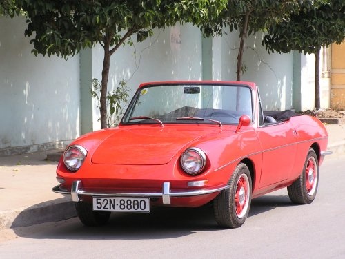 Chiếc xe cổ này thuộc dòng Spyder, kiểu xe chỉ có loại mui xếp, là một trong những “đứa con cưng” của nhà sản xuất ôtô Italia – Fiat. Động cơ 0.8L kết hợp trọng lượng khoảng 700kg giúp xe lướt nhẹ trên đường phố Sài thành với vẻ “liền lạc” từ trong ra ngoài. Nội thất với táp-lô ốp da tỉ mỉ đẹp mắt. Kích thước không lớn nhưng trông Fiat Spyder 850 rất “trường xe” nhờ thiết kế tinh tế, với thân xe điểm xuyến một đường chỉ crôm chạy dài từ chóa đèn pha đến đuôi xe. Phần mặt tiền xe cũng là một điểm 10 nữa với các đường nét như vẽ nên từ chân dung của một mẫu xe sang nổi tiếng thế giới.