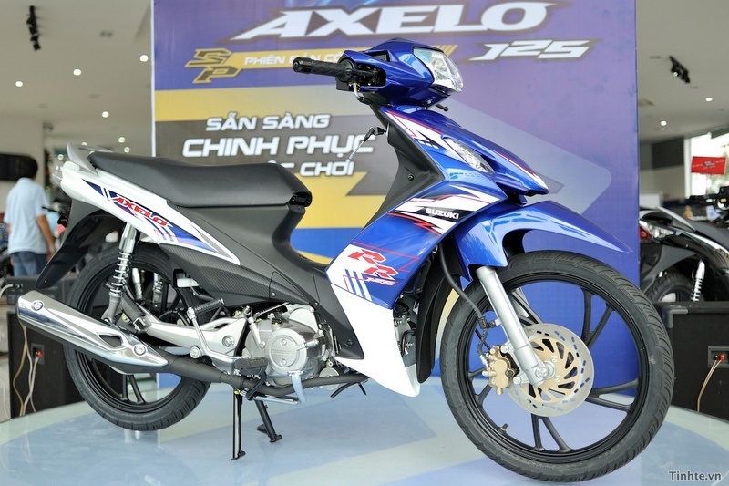 | Ra mắt tại thị trường Việt Nam cách đây gần 2 năm, xe côn tay Axelo của Suzuki được kì vọng sẽ là đối thủ của Yamaha Exciter. Tuy nhiên, Suzuki đã không dùng Axelo để cạnh tranh trực tiếp với Exciter, khi chỉ trang bị cho xe động cơ 125 phân khối. Chính việc định vị ở phân khúc thấp hơn so với Yamaha Exciter nên mẫu xe côn tay của Suzuki cũng có giá bán thấp hơn khá nhiều, khoảng 26,8 triệu đồng. Suzuki Axelo được trang bị động cơ 4 thì, xi-lanh đơn, làm mát bằng không khí, công suất cực đại 7,06 kW tại 8.000 vòng/phút, mô-men xoắn cực đại 9,9 Nm tại 6.000 vòng/phút, đi kèm hộp số 4 số. Ảnh: Tinh tế. |