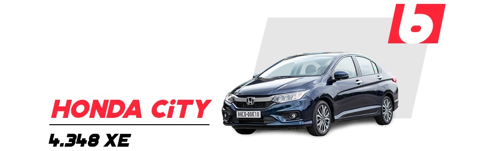 Sự xuất hiện của Honda City trong bảng xếp hạng 10 xe bán chạy nhất nửa đầu năm 2020 có thể xem là một bất ngờ, khi City đạt doanh số bùng nổ 2.183 xe chỉ trong tháng 6. Qua đó, xe vượt mặt nhiều đối thủ sừng sỏ như Kia Soluto, Kia Cerato, Hyundai Tucson, Hyundai Santa Fe, Toyota Fortuner, Mazda3 và Honda CR-V để vươn lên vị trí thứ 6.