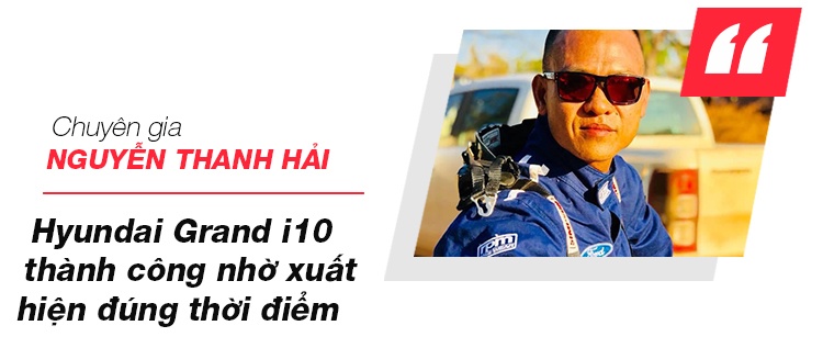 Trao đổi với Zing, chuyên gia Nguyễn Thanh Hải nhận định: "Thành công của Hyundai Grand i10 đến từ việc chiếc xe xuất hiện đúng thời điểm nhu cầu mua xe chạy dịch vụ tăng cao tại Việt Nam". Ngoài ra, thiện cảm mà người dùng dành cho mẫu xe Hyundai Getz trước đó cũng góp phần giúp Grand i10 nhanh chóng chiếm được niềm tin của khách hàng hơn.