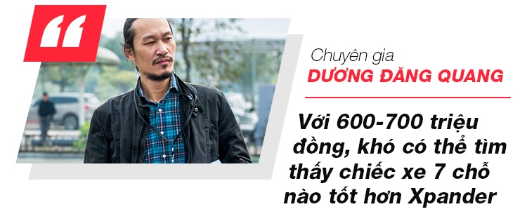 Theo chuyên gia Dương Đăng Quang, với khoản ngân sách 600-700 triệu đồng, khó có thể tìm thấy một chiếc xe 7 chỗ cỡ nhỏ nào tốt hơn Xpander, đặc biệt về mặt thiết kế. Nếu áp dụng hợp lý chiến lược tăng dần lượng trang bị sau mỗi lần nâng cấp, Xpander sẽ tiếp tục củng cố chắc chắn vị trí của mình.