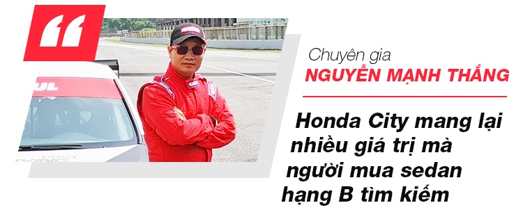 Theo chuyên gia Nguyễn Mạnh Thắng, ngoài khả năng cách âm và công suất điều hòa chưa ổn, Honda City mang lại nhiều giá trị mà người mua sedan hạng B tìm kiếm như rộng rãi, chi phí sử dụng tiết kiệm và cảm giác lái tốt.