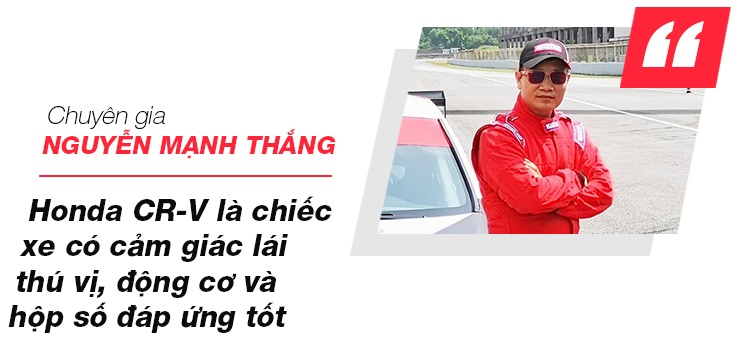 Với chuyên gia Nguyễn Mạnh Thắng, Honda CR-V là chiếc xe có cảm giác lái thú vị, động cơ và hộp số đáp ứng tốt. Tuy nhiên, xe thiếu lựa chọn hệ dẫn động AWD và hàng ghế thứ hai khá ồn.