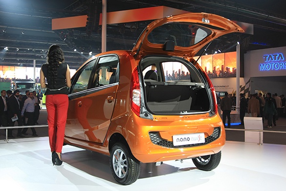 | Tata Nano Twist Doanh số bán hàng của Nano, được quảng cáo là chiếc xe rẻ nhất thế giới , đã thất bại trong những năm gần đây . Tata hiện đang trong quá trình giải quyết một số thiếu sót của chiếc xe , và một số bản cập nhật đã được chứng minh Nano tại Delhi. Nano Twist có thể mở cửa hậu (trước đây phải bỏ hàng hóa qua hàng ghế sau). Nó nặng hơi so với Nano tiêu chuẩn nhưng có bình nhiên liệu lớn hơn để giải quyết vấn đề về phạm vi hoạt động. Nano cũng được giới thiệu tại Delhi, giờ đây đã được trang bị hộp số tự động bốn số lấy từ Magneti Marelli. |