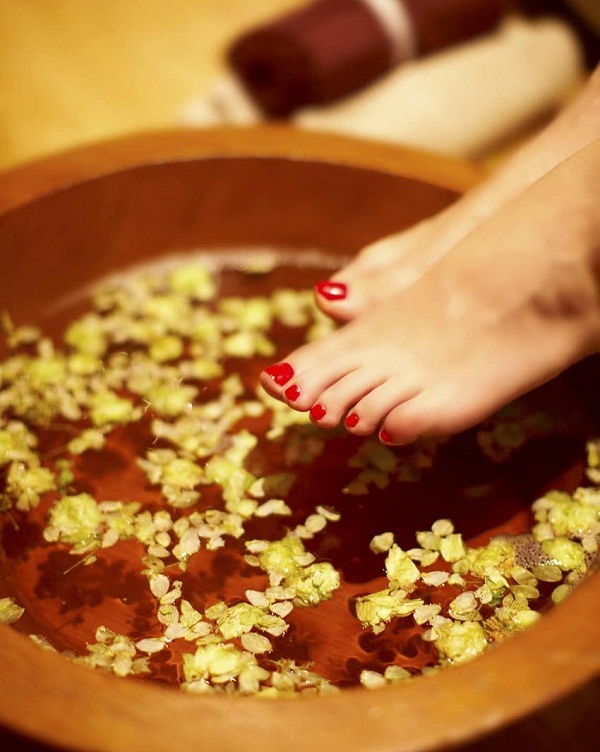 Có thể ngâm chân với nước ấm hàng ngày trước khi đi ngủ hoặc thực hiện từ 3-5 lần mỗi tuần để giúp cho các mạch máu lưu thông. Nước ấm sẽ làm mềm và bong cách lớp da chết, giúp đôi chân chị em hồng hào, khỏe mạnh hơn.