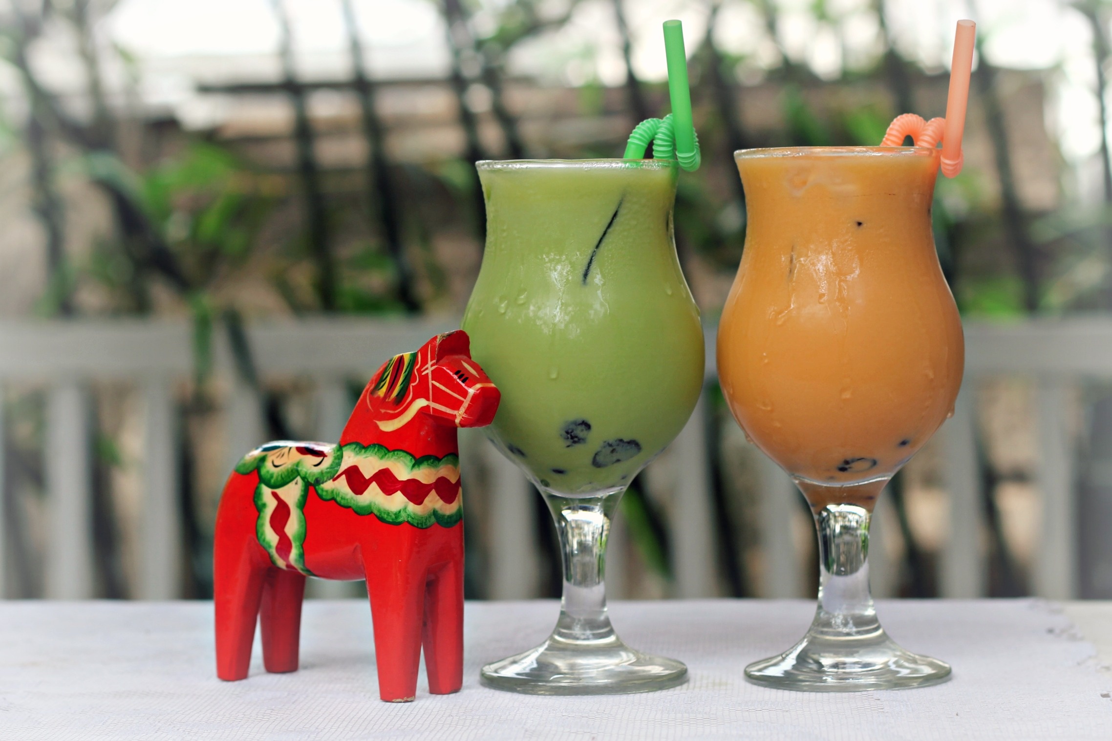 | Thực đơn của Unicorn's Home thường xuyên được bổ sung bởi những đồ uống mới lại, như hai món trà sữa Thái này. |